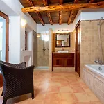La villa Can Xumeu Den March dispone di un bagno con una doccia. Inoltre, gli ospiti possono usufruire di asciugacapelli e teli da bagno.